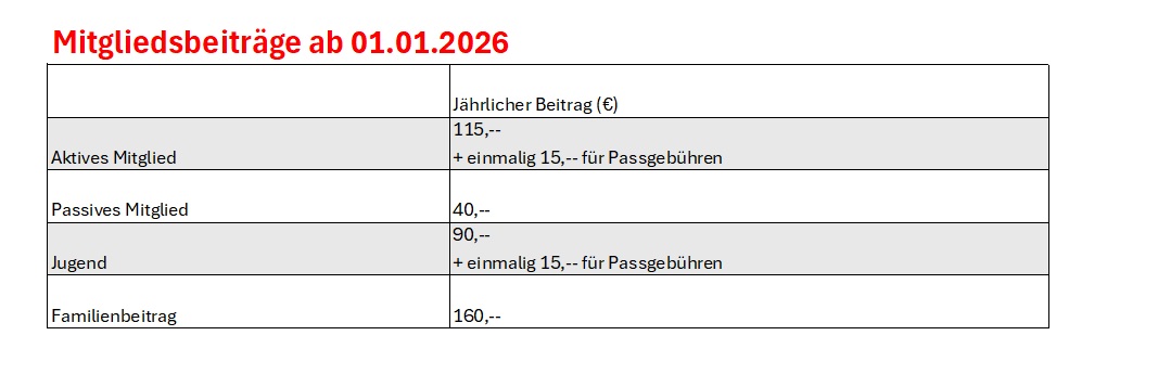 Aktivenbeitrag für alle Abteilungen Erwachsene          115,- Euro