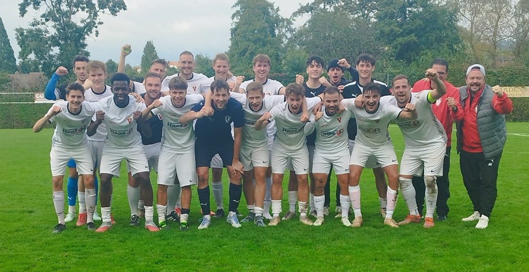 Ein am Ende sicherlich knapper, aber verdienter Sieg unserer Ersten Mannschaft gegen die spielstarke Mannschaft des Freiburger FC 2. Unsere Trainer konnten quasi fast aus dem Vollen schöpfen, die Urlaubszeit ging zu Ende und das Aufgebot für diese Partie beinhaltete gleich 19 Akteure, ergo konnten gleich 3 Spieler gar nicht zum Einsatz kommen. Auf dem seifigen, aber doch gut bespielbaren Rasenplatz war die Partie in der ersten Halbzeit weitgehend ausgeglichen. Etwas mehr Zug zum Tor entwickelten aber in den ersten 45 Minuten die Gäste aus Freiburg. So hatten diese auch die erste gute Möglichkeit in dieser Partie in der 24. Minute. Nach einem Freistoß aus dem Halbfeld scheiterte Gästespieler Ian Rutschmann an Torhüter Philipp Henselmann. Den ersten nennenswerten Abschluss unserer Mannschaft konnte in der 29. Minute durch Mario Paolillo verzeichnet werden, doch zu zentral der Ball direkt auf Gästekeeper Vitacca. Fünf Minuten später dann Freistoß für unsere Mannschaft aus halblinker Position, Mario Paolillo aus 20 Metern, doch Gästekeeper Vitacca fischte den Ball aus der Ecke. Kurz vor der Pause verfehlte Jonas Rinderle mit einem strammen Abschluss aus 20 Metern das Gästetor nur knapp, das 0:0 zur Pause ging soweit in Ordnung. Wesentlich aktiver präsentierte sich unsere Mannschaft zur zweiten Halbzeit. Schon in der 47. Minute lag der Ball eigentlich mustergültig bei Jakob Walz zum Abschluss, doch dieser war dann doch am Ende zu schwach. Auf der Gegenseite auch der FFC gefährlich durch Routinier Colin Kanwischer, doch fand er in Torhüter Philipp Henselmann seinen Meister. Unsere Mannschaft aber nun feldüberlegen drückte auf die Führung. In der 64. Minute hatten unsere Fans schon den Torschrei auf den Lippen, als Jonas RInderle den Ball aus 14 Metern an den Innenpfosten schlenzte, mächtig Dusel hier für die Gäste. Coach Michele Borrozzino wechselte dann mit Tom Bihlmann, Madiou Bah und Lukas Hafner drei frische Kräfte ein. In der 71. Minute scheiterte zunächst Ele Schmelzer aus 16 Metern stramm an Gästekeeper Vitacca, den Abpraller hätte schon Tom Bihlmann versenken können scheiterte aber auch am Gästekeeper, im dritten Versuch war es dann Mario Paolillo, der zur 1:0 Führung einnetzte. (Das Tor hatte Mario schon vor dem Spiel bei Axel Hilfinger persönlich angekündigt „Heute schieß ich für Dich ein Tor“! Dann auch noch das Siegtor!).  Kurz darauf hatte unsere Mannschaft zwei weitere gute Möglichkeiten. In der 73. Minute scheiterte der Madiou Bah am Gästekeeper und kurz darauf setzte Sebi Chapman am zweiten Pfosten nach einem Eckball den Ball neben das Tor. In der Schlussphase nochmals ein offener Schlagabtausch. Die Gäste drückten nochmals und unserer Mannschaft eröffneten sich dadurch Konter wie in der 89. Minute, als erneut Madiou Bah knapp am 2:0 und dem Gästekeeper scheiterte, ebenso wie kurz darauf Lukas Hafner. In der Nachspielzeit stürmte gar noch der Gästekeeper mit und der eingewechselte Denis Bajraktar scheiterte in der Nachspielzeit nochmals an Torhüter Philipp Henselmann. So blieb es am Ende beim knappen, aber auch verdienten Sieg für unsere Erste. Schiedsrichter Yannick Leinfelds mit einer insgesamt tadellosen Leitung, so auch die Meinung der Mannschaften, Trainer und Zuschauer.  Nächsten Sonntag dann das mit Spannung erwartete Derby beim FC Heitersheim, darauf dürften sich die Fans aus beiden Lagern mächtig freuen. Anstoß ist um 14.00 Uhr.